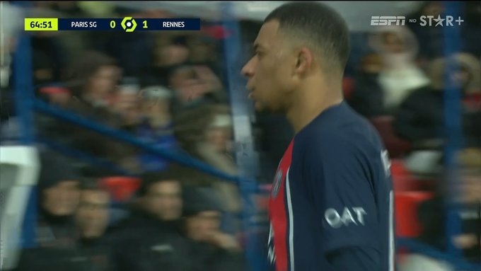 2月26日訊 法甲第23輪,巴黎vs雷恩。比賽65分鐘后,姆巴佩被替換,貢薩洛·拉莫斯替補出場。